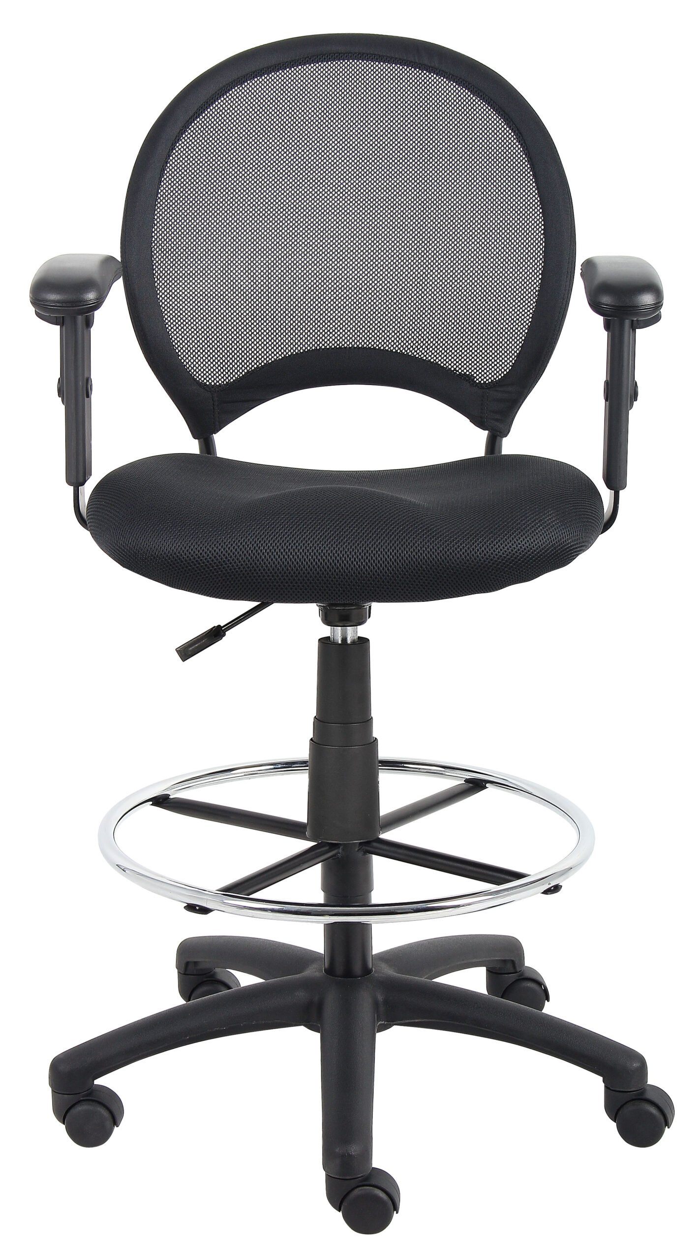 Black Mesh Drafting Stool W/ Adjustable Arms By Boss